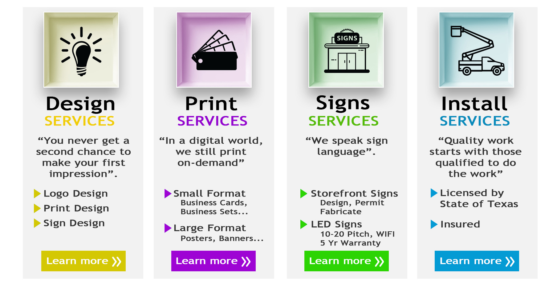 We have been providing award winning design, printing, sign production and installation services in the DFW metro and surrounding areas for over 35 years.
